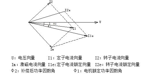 從圖可以看出,靜止式進相器和電容補償對電機的作用點不同,電容是在電機的前端定子側(cè)進行補償,其補償范圍是在補償點的前端;靜止式進相器串聯(lián)在電機的后端,其補償范圍擴大到了電機。