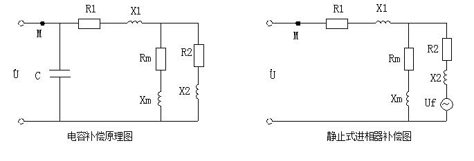 電容補償和進相器補償?shù)脑韴D分別如下: